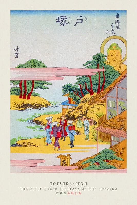 Samolepka Special Edition Totsuka-juku / Japanese Golden Buddha (Pink & Green Japandi) - Katsushika Hokusai
