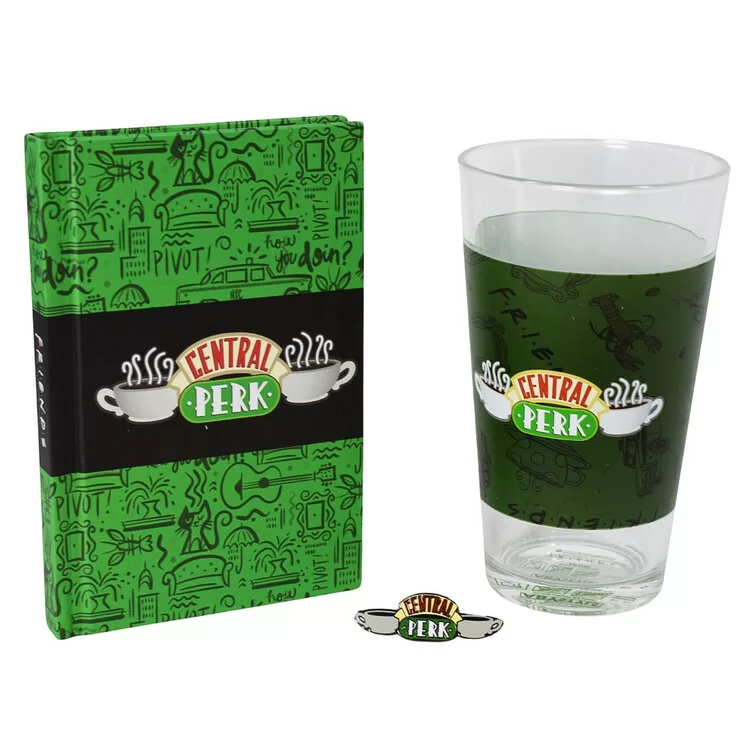 Sada 3 praktických darčekov pre verných fanúšikov seriálu Priatelia. Sada obsahuje hrnček (400 ml), zápisník formátu A6 a kovový odznak s nápisom „Central Perk“.