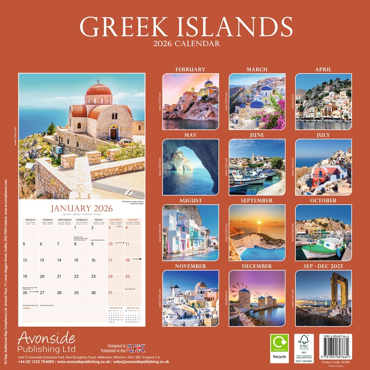 • Kalendár Greek Islands môžete zavesiť na akúkoľvek stenu