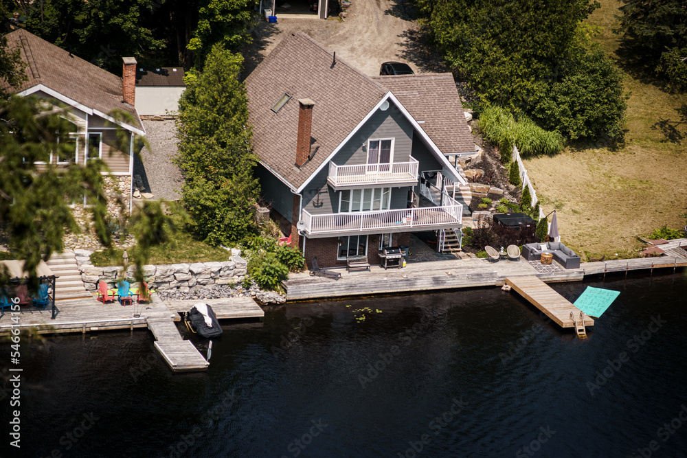 Obraz na plátne Lions lookout, Huntsville, Ontario, Canada - View of cottages along Fairy Lake