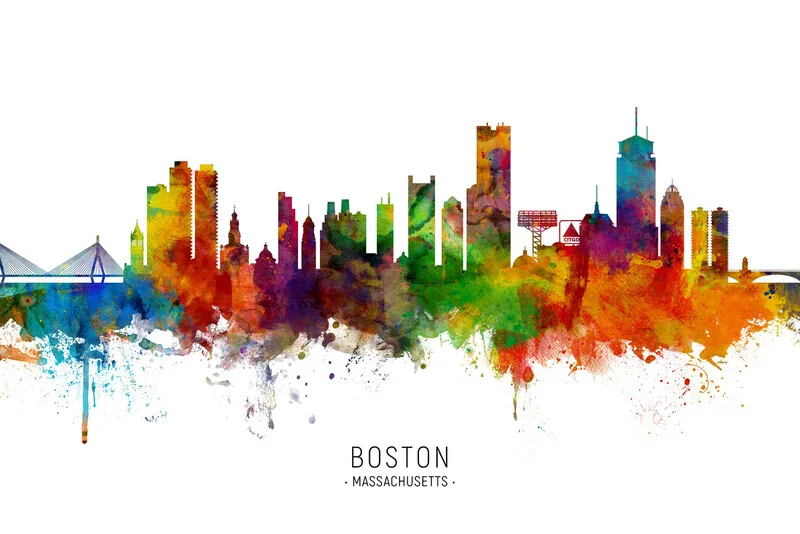 Plagát Boston Massachusetts Skyline Cityscape Painting Watercolor