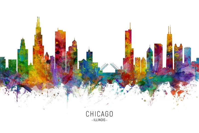 Obraz na plátne Chicago Illinois United States Skyline Cityscape Painting Watercolor