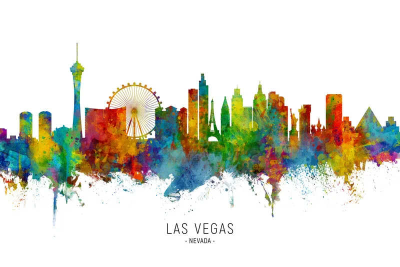 Samolepka Las Vegas Nevada USA Skyline Cityscape Painting Watercolour