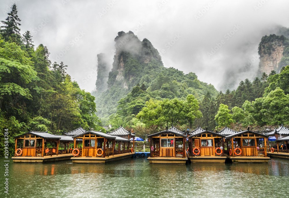Obraz na plátne Baofeng Lake Boat Trip in a rainy day with clouds and mist at Wulingyuan, Zhangj