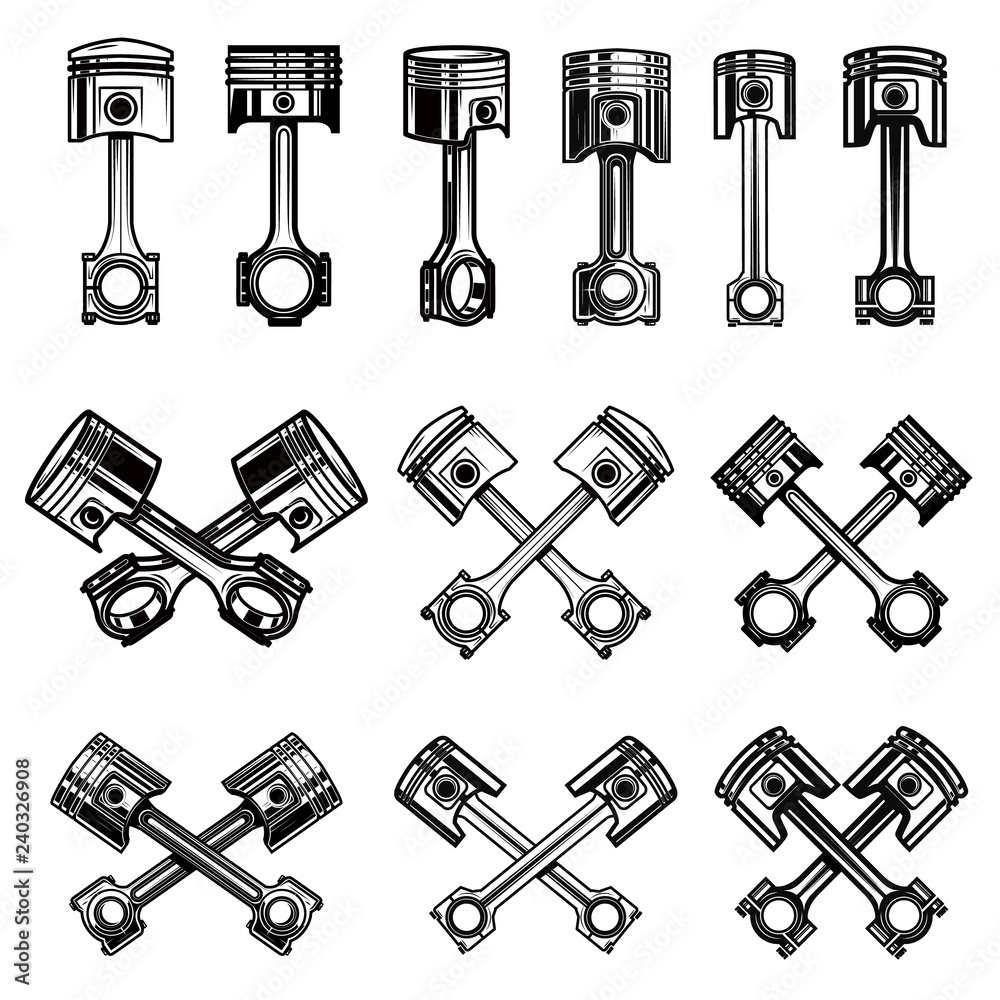 Obraz na plátne Set of piston icons and design elements for logo, label, emblem, sign, poster, card, t shirt