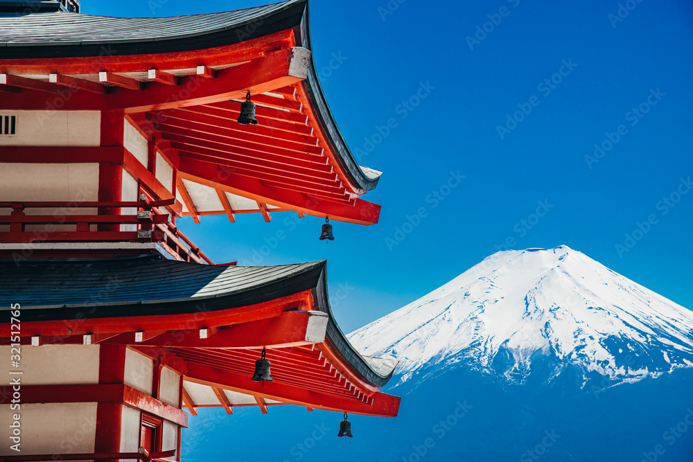 Obraz na plátne Red Pagoda with Mt Fuji on the background,Mt