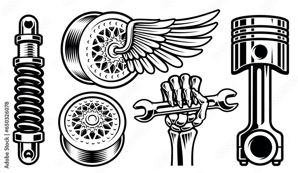 Obraz na plátne Set of vector auto parts illustrations