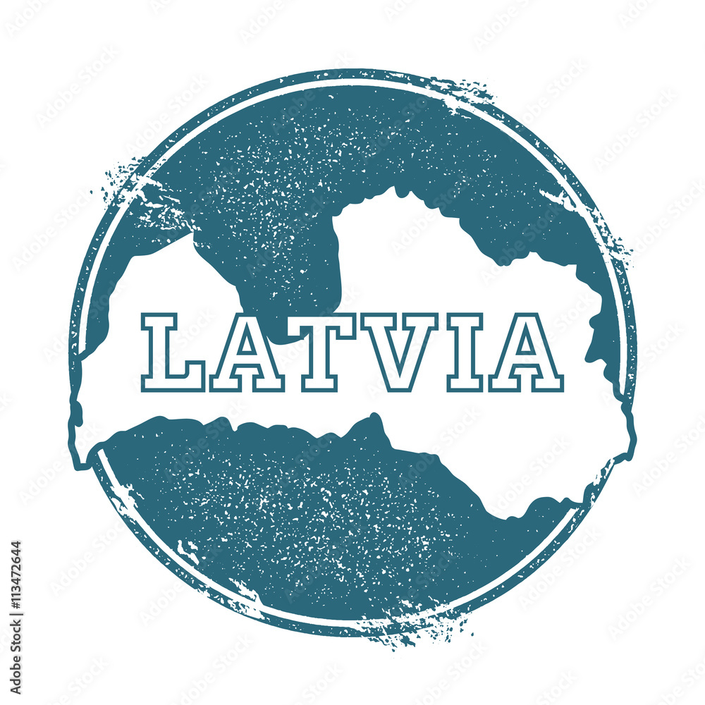 Samolepka Grunge rubber stamp with name and map of Latvia, vector illustration