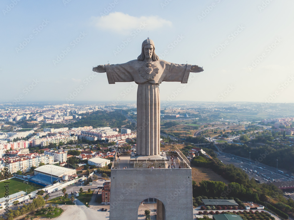 Samolepka View of The Sanctuary of Christ the King, Cristo Rei, Almada, Lisbon, with 25 de